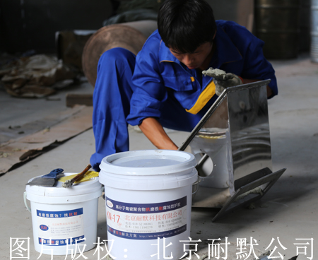 圖(4)北京耐默公司施工人員劉工正在認真的涂抹耐磨涂層