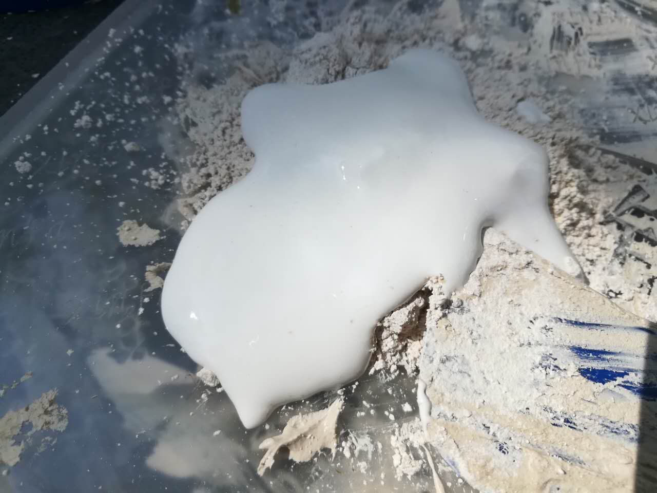 混合時(shí),應(yīng)在不斷攪拌主劑的情況下,緩緩倒入固化劑。